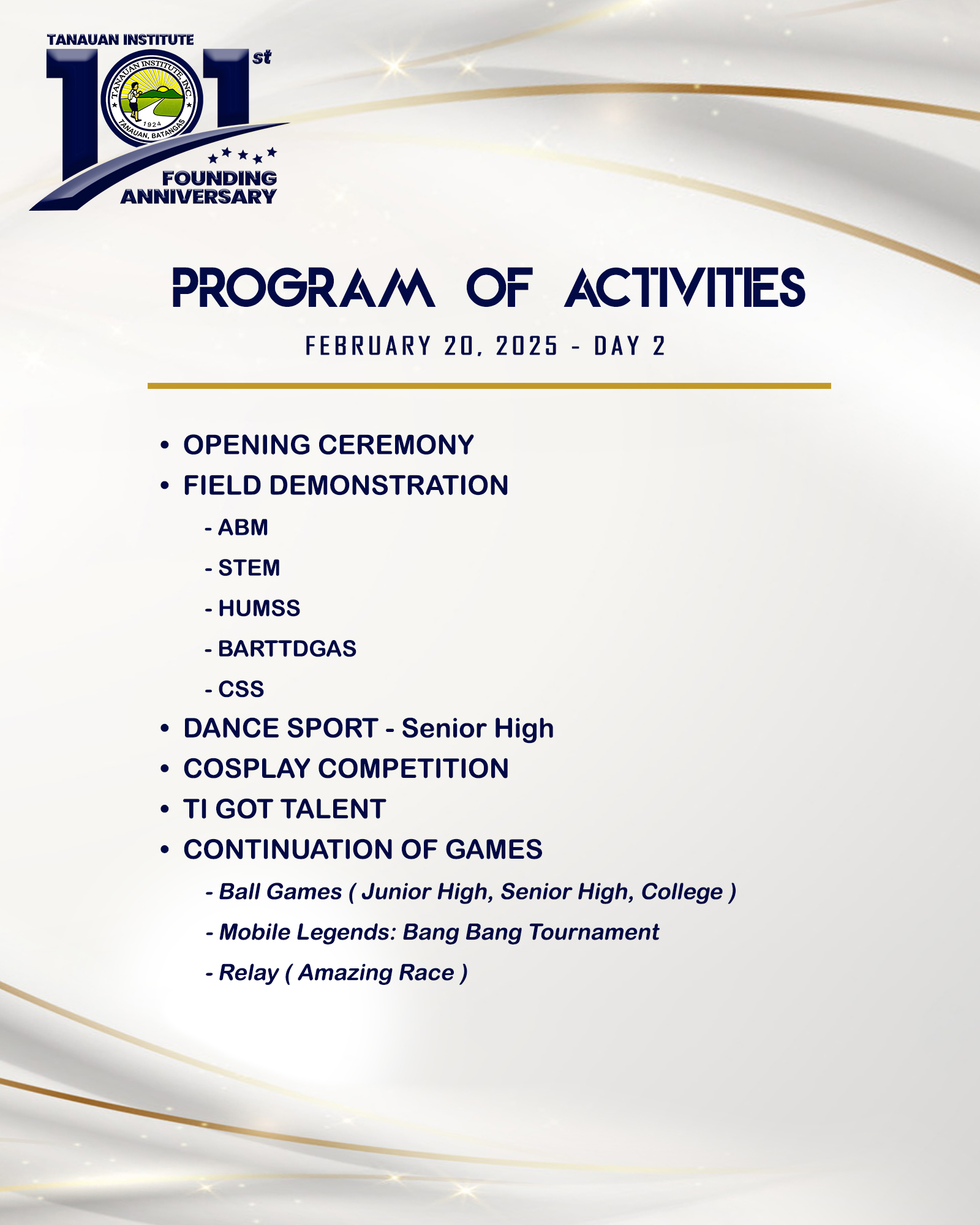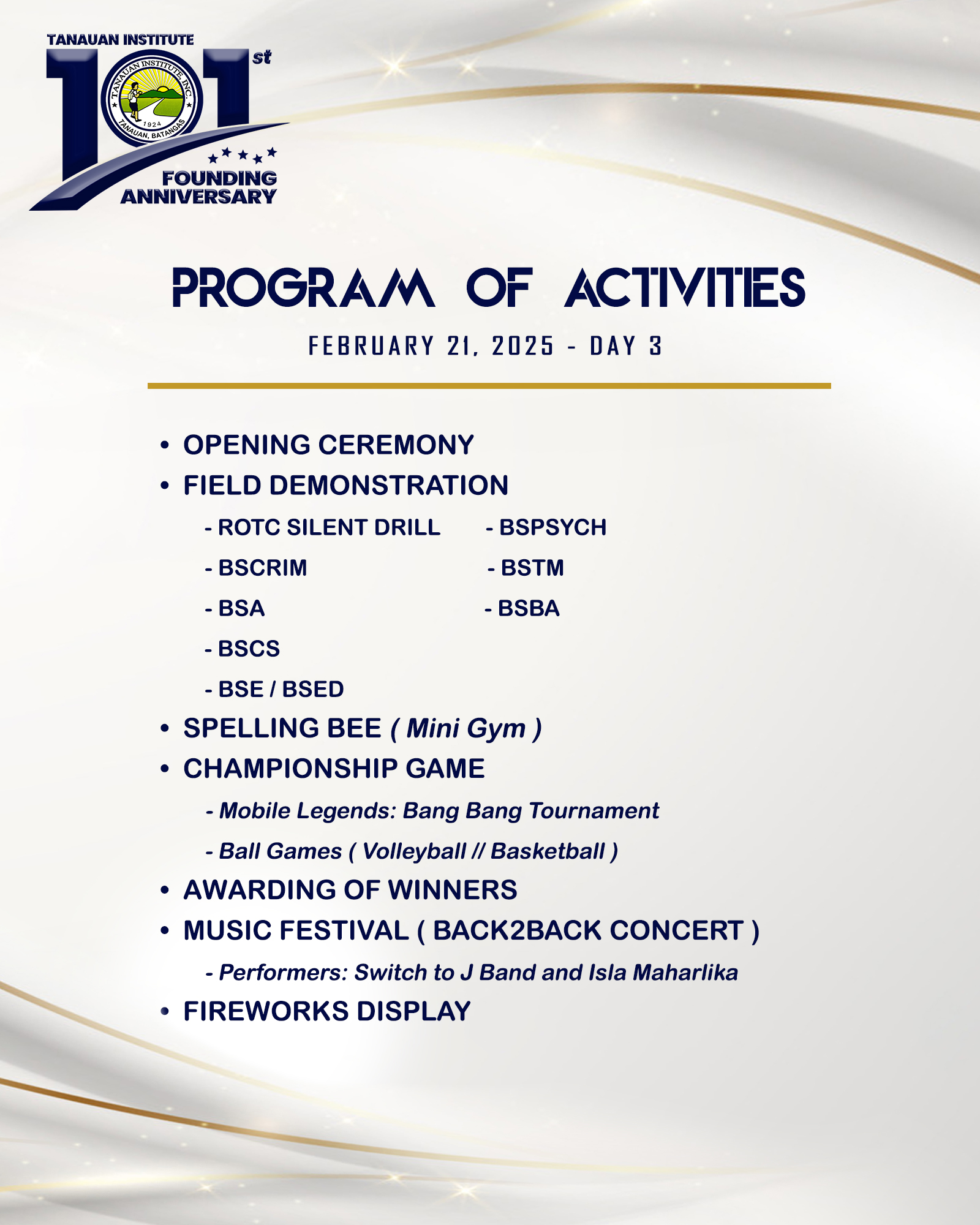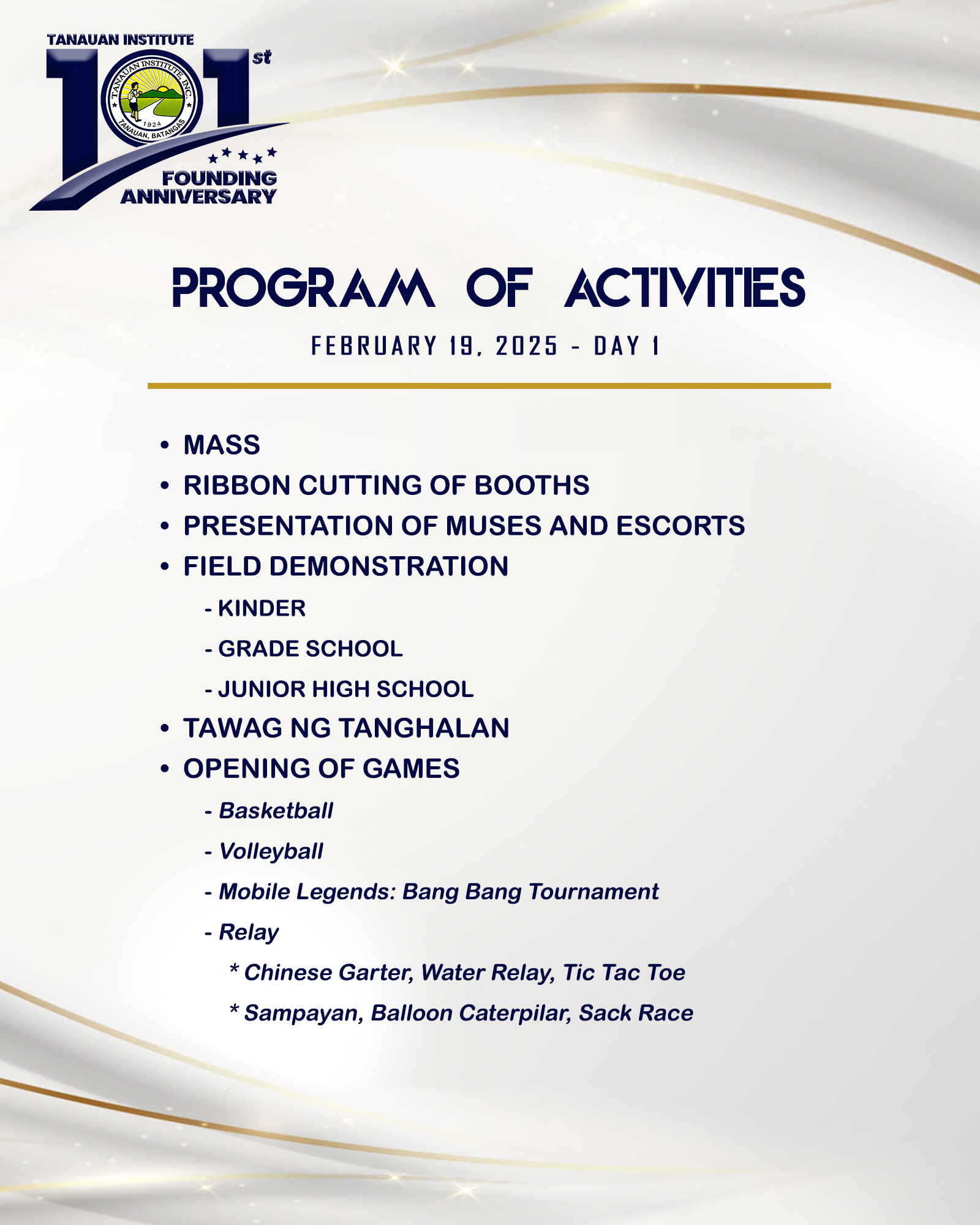 Program of Activities - Tanauan Institute 101st Founding Anniversary